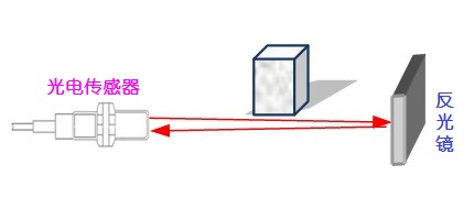 回歸反射式同時也稱鏡片(面)反射式光電傳感器,回歸反射式傳感器也是集發射器與接收器于一體的,傳感器發射器發出的光線經過反射鏡,反射回接收器,當被檢測物體經過且完全阻斷光線時,光電傳感器就產生了和光變化相對應的的開關信號。 3.對射式光電開關